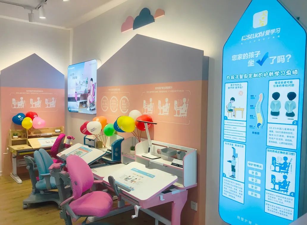 消費需求在哪里,品牌就在哪里。圍繞青少年兒童的學習習慣、生活方式和健康需求,愛學習首創(chuàng)「4D護脊學習桌椅」,開創(chuàng)「量身形配桌椅」的護脊體驗新模式,「用愛護脊」的品牌戰(zhàn)略也在終端空間里,得到了淋漓的展現(xiàn),實現(xiàn)一站式體驗。