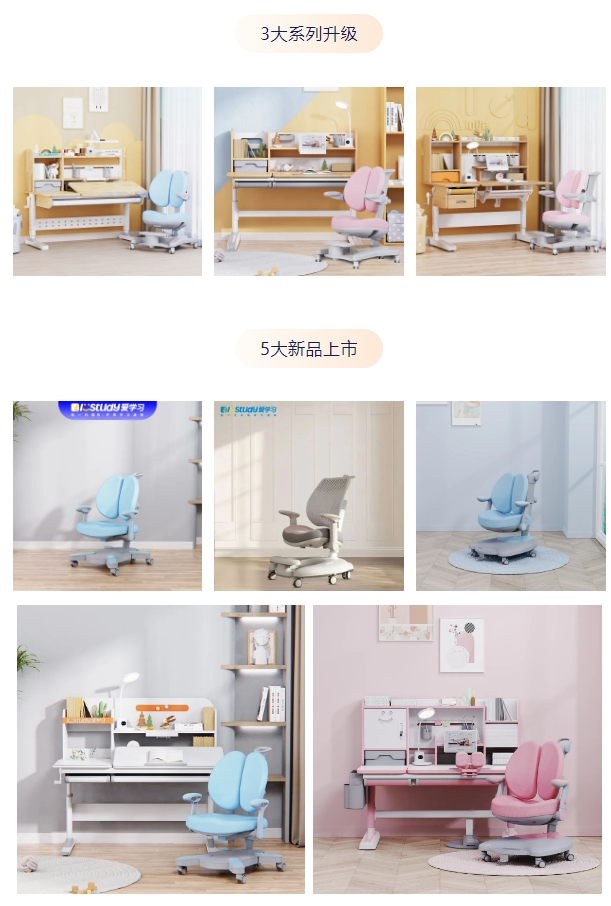 產(chǎn)品競(jìng)爭(zhēng)力,始終是行業(yè)發(fā)展的向上力。愛學(xué)習(xí)2023年專注護(hù)脊學(xué)習(xí)桌椅研發(fā),以更豐富產(chǎn)品線升級(jí)護(hù)脊學(xué)習(xí)桌椅。